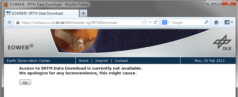 Действительно уже можно скачать даже через браузер. Пару дней назад при нажатии “SRTM Data download” появлялось http://gis-lab.info/forum/download/file.php?id=6042