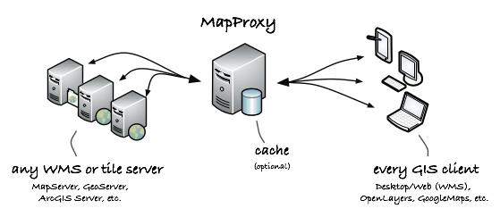 MapProxy — расширяемое и гибкое решение простых и комплексных задач: от простого тайлового сервиса для веб-клиента OpenLayers до центрального узла SDI, объединяющего и ускоряющего множество распределённых WMS-сервисов.