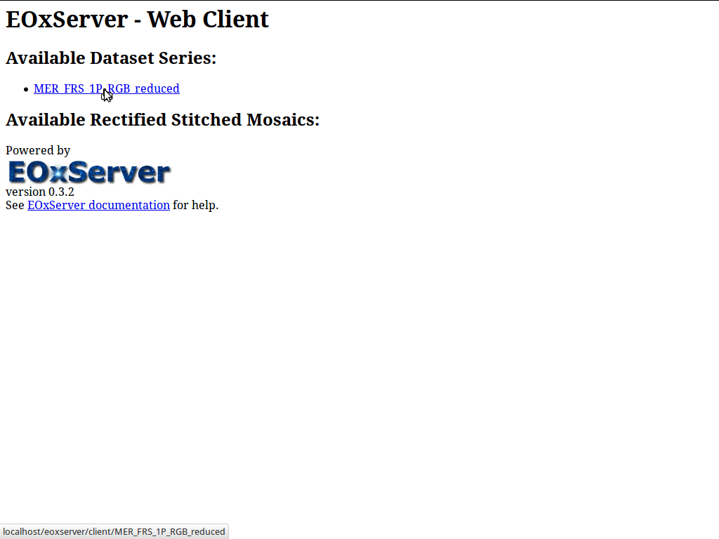 Щёлкните по значку EOxServer из раздела Web Services. Запустится браузер, показывающий демонстрационную страницу http://localhost/eoxserver/ с теми же данными, которые доступны онлайн.