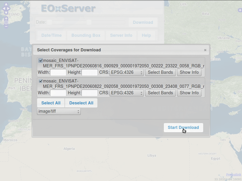 - Как просматривать данные EO, фильтровать, делать выборки и загружать через веб-клиент EOxServer.