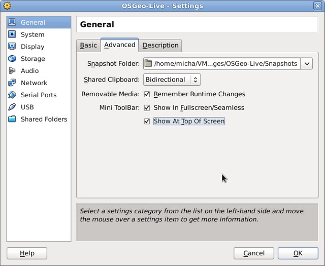 Это руководство описывает один из способов запуска OSGeo-Live в виртуальной машине VirtualBox. Для остальных способов проследуйте по ссылке из “См. также”.