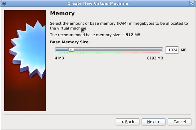 Установите размер основной памяти 1024 MB (или больше, если у вашего компьютера более 4GB ОЗУ).
