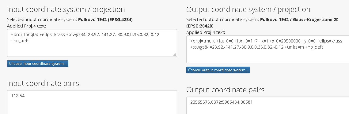 Только не совсем понял. Там нужно выбрать Pulkovo 1942 (83) (deg) по их системе и пересчитать в Pulkovo 1942 / Gauss-Kruger 20N ?