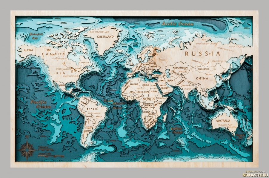 Батиметрия степени подробности уровня «мир/континент» в шейп-файлах есть в Natural Earth Vector