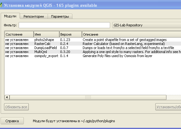 цифру 165 видите? Она как бы намекает, что вы не все репозитории подключили, т.к. плагинов для QGIS больше 200.