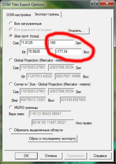 К сведению. Мой случай, конечно, клинический и решения не имеет почти ни в одной программе. Нужно подготовить тайлкэш для NextGis Mobile на о-в Врангеля, который, как известно, пересечен 180-м градусом. Если это пытаешься сделать (исходные данные в UTM Zone 01), бедная программа начинает мне считать 2.8 млн тайлов 14-го уровня по широте вокруг всего мира, естественно, рано или поздно виснет. Вариант с резкой растра на 2 половины не только неудобен, но и не работает, т.к. режется весь вид, а его подогнать так, чтоб край ложился ровно на 180, просто невозможно - результат тот же. Но это, к сожалению, проблема для всех программ - единственное вменяемое решение мне удалось найти в GlobalMapper - явное указание области интереса в DD (см. картинку) и соответственно, тайлирование в 2 этапа - до и после 180 меридиана (таким образом я в частности делал jnx-ы для Garmin). Нельзя ли что либо подобное добавить и в Qtiles ?