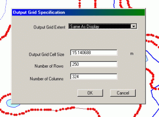 Подгружаем модуль Spatial Analyst (File\Extensions). В строке меню появится 2 новых пункта - "Analisys" и "Surface" Делаем активной созданную только что точечную тему и выбираем Surface\Interpolate Grid. В появившемся диалоговом окне (рис.2) нужно выбрать область построения GRID и задать размер ячейки GRID в единицах вида (чаще всего - в метрах).
