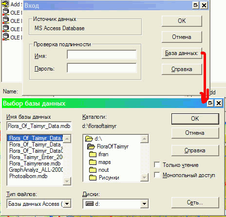 По двойному щелчку появится окно «Вход», здесь по кнопке «База данных» выбираем нужную нам БД и при необходимости вводим Логин-Пароль базы данных.
