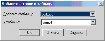 Затем используя режим Таблица -> Добавить записи в таблицу, добавляем по очереди каждую из таблиц в общую, предварительно созданную, таблицу vmap1.